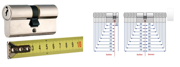 Deze 30 - 30 mm cilinder is in totaal 60 mm lang en daarmee geschikt voor deuren van 40 tot en met 55 mm dik. Bij het monteren van het cilinder in het slot steekt de cilinder aan beide kanten 20 mm uit.