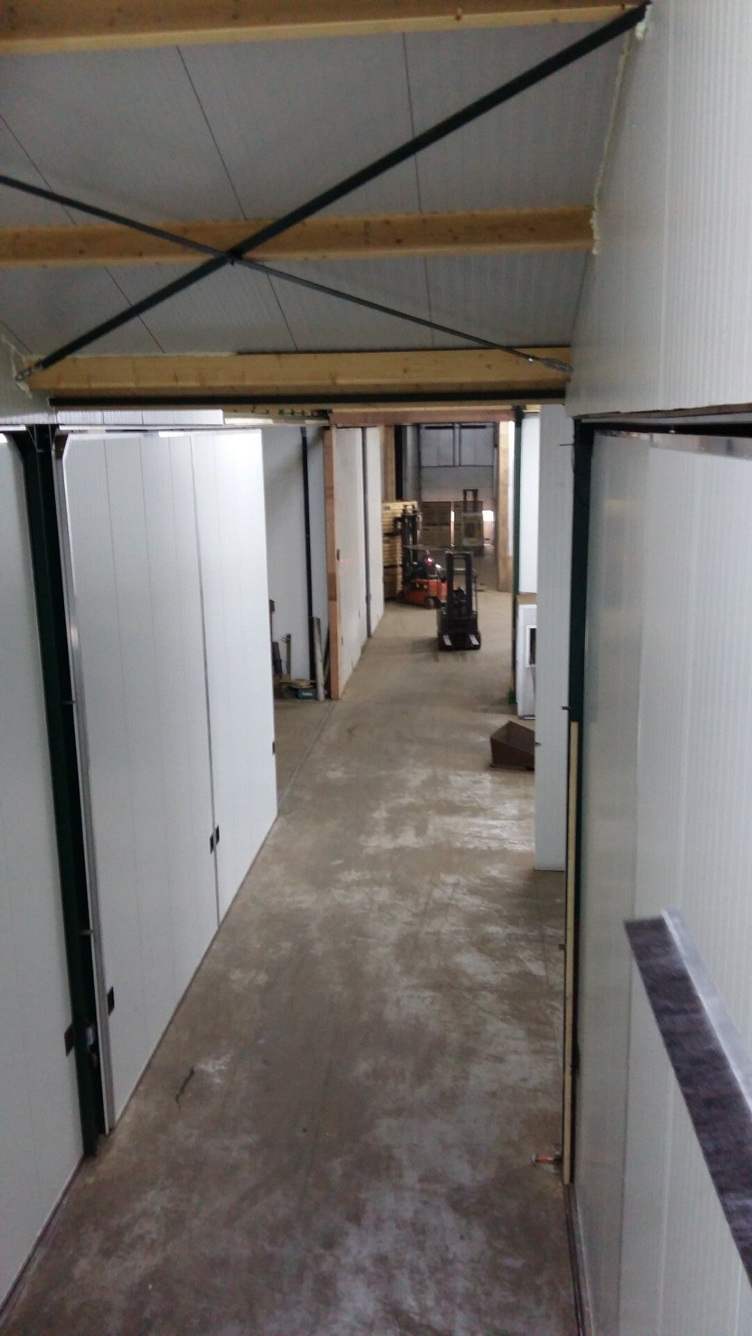 Deze 6,5 meter hoge schuifdeuren zijn toegepast in een koelcel. Er is gebruikt gemaakt Het betreft een land- en tuinbouwbedrijf met diverse verdelingen in de loods voor verschillende soorten producten. Zo gezegd, zo gedaan: zie de foto's voor het resultaat.